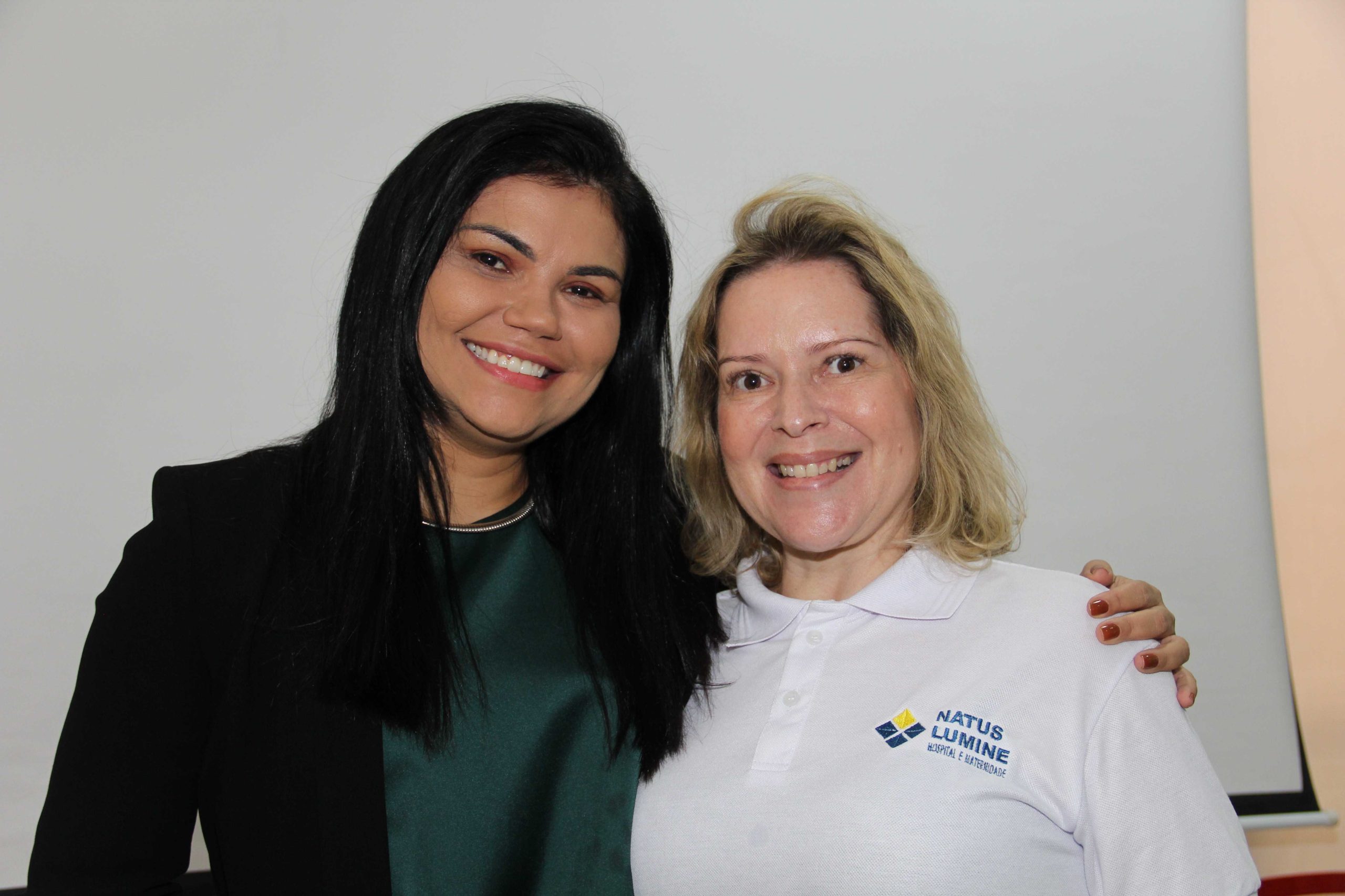 A psicóloga convidada Liane Milhomem com Chrystiane Vasconcelos, Coordenadora do Grupo de Gente e Gestão do Natus Lumine Hospital e Maternidade. FOTO – DANIELLE VIEIRA: