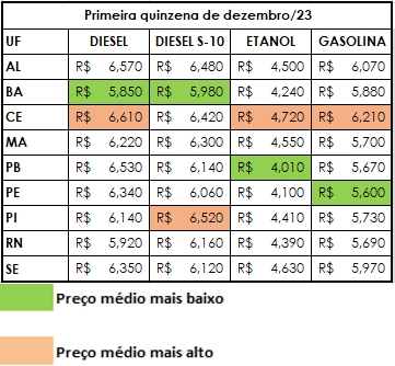 No fechamento do ano, preço do diesel comum reduz 2,14% e do S-10 1,94% na Região Nordeste, aponta Edenred Ticket Log