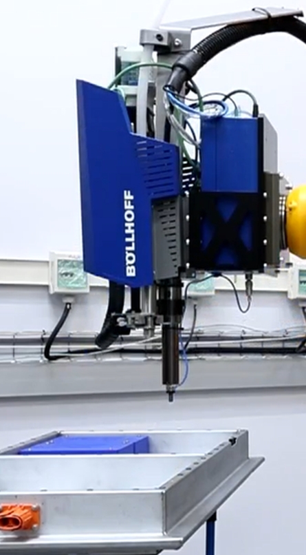 Solução automatizada da Böllhoff valida 100% a vedação de fixação de baterias em veículos elétricos, durante o processo de produção.