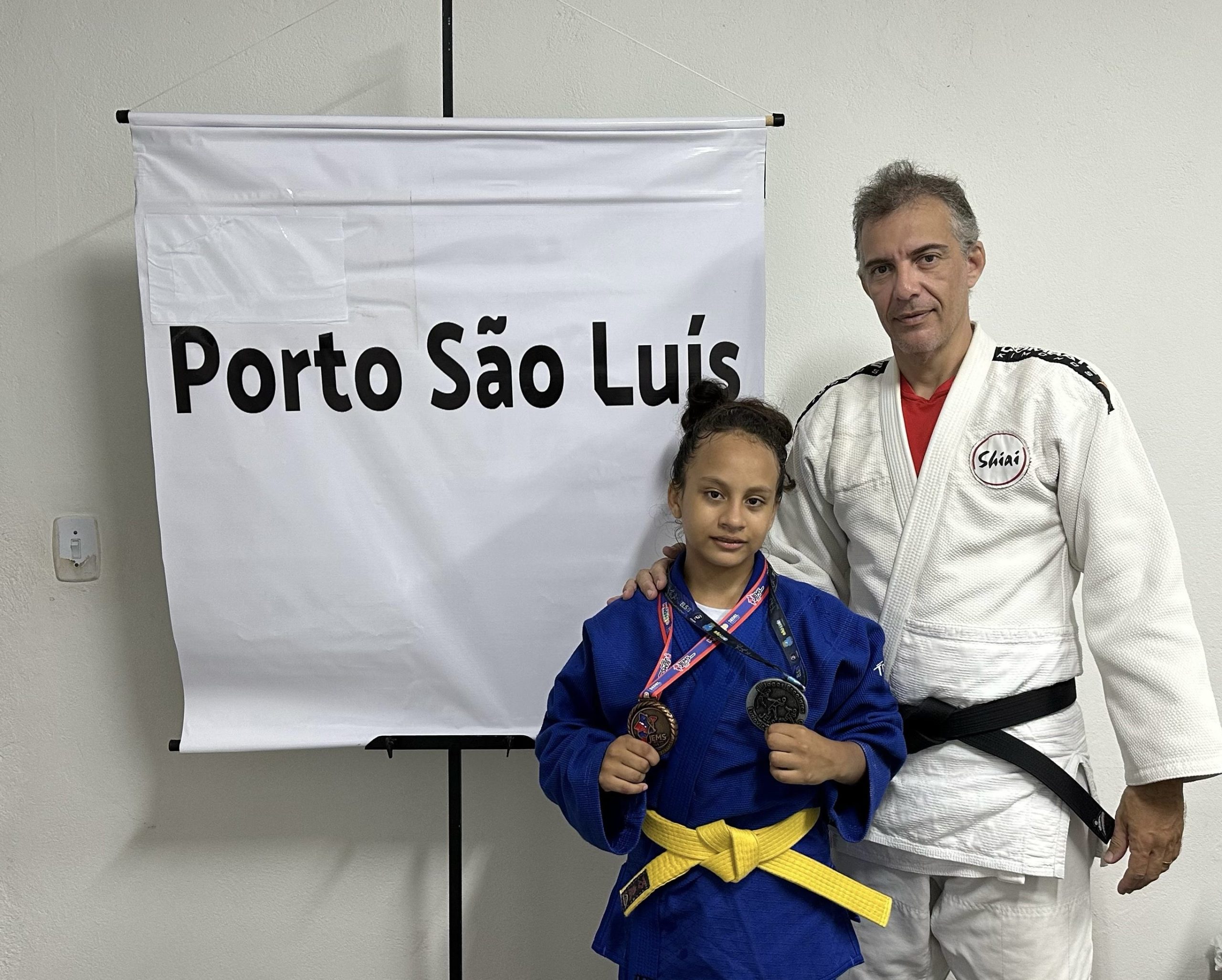 FOTO – DVULGAÇÃO: A judoca RKayara Rocha Ferreira com o Sensei Witaçuci Bezerra, que viajam para competir no Campeonato Brasileiro de Judô – Região I em Manaus, com apoio do Porto São Luís.