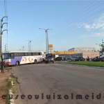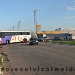 Um ônibus de turismo da viação Praia Grande tentou fazer o retorno na Avenida Médici e quebrou.