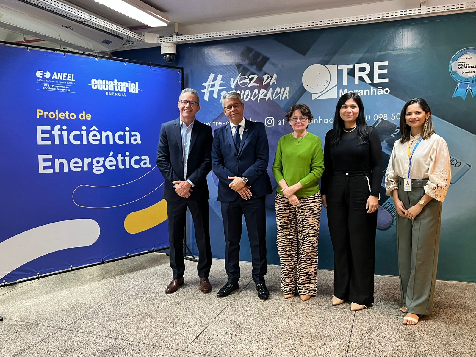 A solenidade aconteceu na sede do TRE, e o Termo de Cooperação foi assinado pelo Presidente do TRE-MA, Desembargador Paulo Velten; pela corregedora, Desembargadora Francisca Galiza e pelo Presidente da Equatorial Maranhão, Sérvio Túlio dos Santos. Também estiveram presentes as juízas Manuella Faria, Joseane Bezerra e Rosângela Prazeres além das executivas da Equatorial Maranhão Francila Soares, Gerente de Experiência do Cliente; Dayane Pereira, Líder de Operações do Programa de Eficiência Energética.