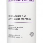 Neoderm Complex Anti-Aging Corporal Hidratante 5 AG (240 ml) – Preço sugerido: R$ 146,00: hidrata, alisa a textura da pele, nutre e devolve maciez, além de tonificar e melhorar a firmeza cutânea. Possui potente ação antioxidante, prevenindo o envelhecimento precoce. Ajuda a tratar a ceratose pilar (“bolinhas” que costumam aparecer nas regiões do braço, coxas e bumbum).